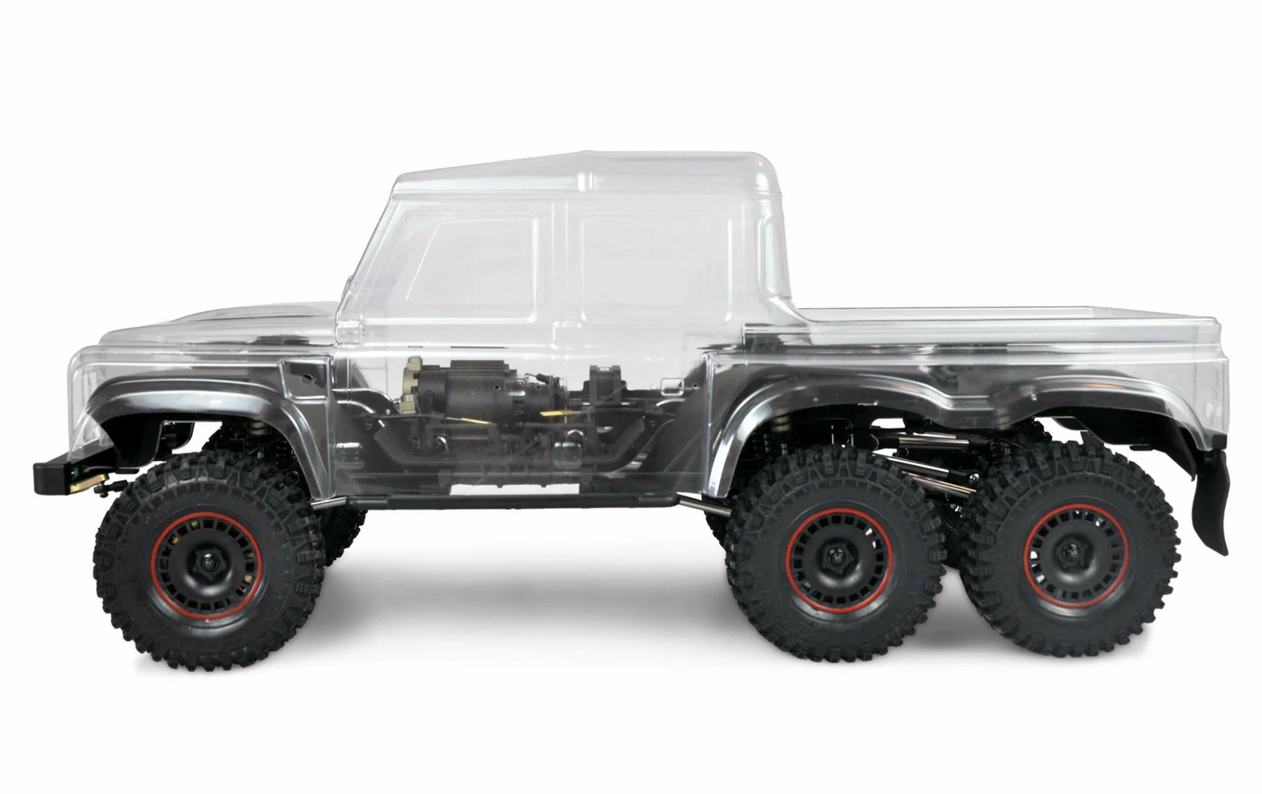 Type de véhicule: Crawler/Trial, Transmission: 6×6, Type de moteur: Conçu pour électriques Brushed, Type de modèle: Rouleau, Nécessaire pour la finalisation: Système pour modèle réduit, Chargeur, Batterie, Moteur, 4 Servos, Outil, Couleur, Régulateur, Couleur de détail: Transparent