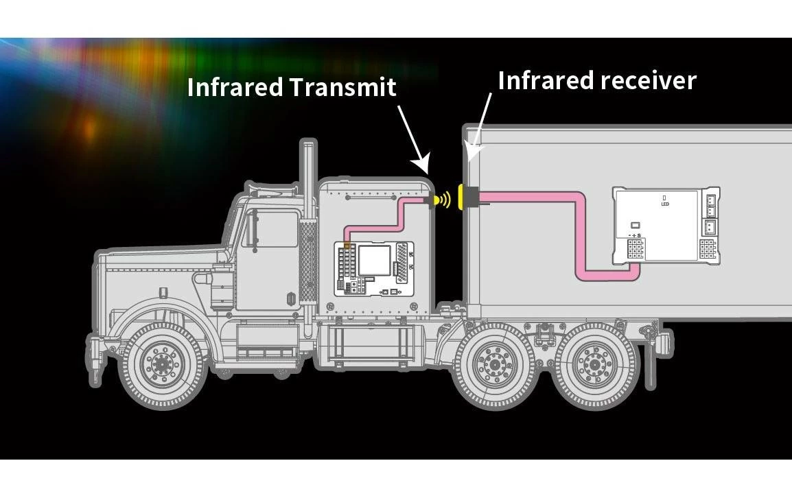 – Communication entre le tracteur et la remorque par émetteur/récepteur infrarouge