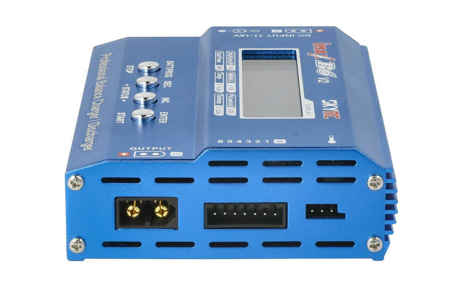 – Types de batterie compatibles: Lithium-polymère (Li-Po); Lithium-polymère (Hv-Li); Nickel-hydrure métallique (NiMH); Nickel-cadmium (NiCd); Lithium-fer (Li-Fe); Lithium-ion (Li-ion); Plomb