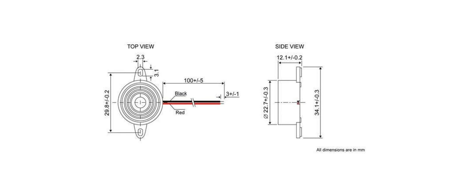 Buzzer subminiature pour montage à bride, noir